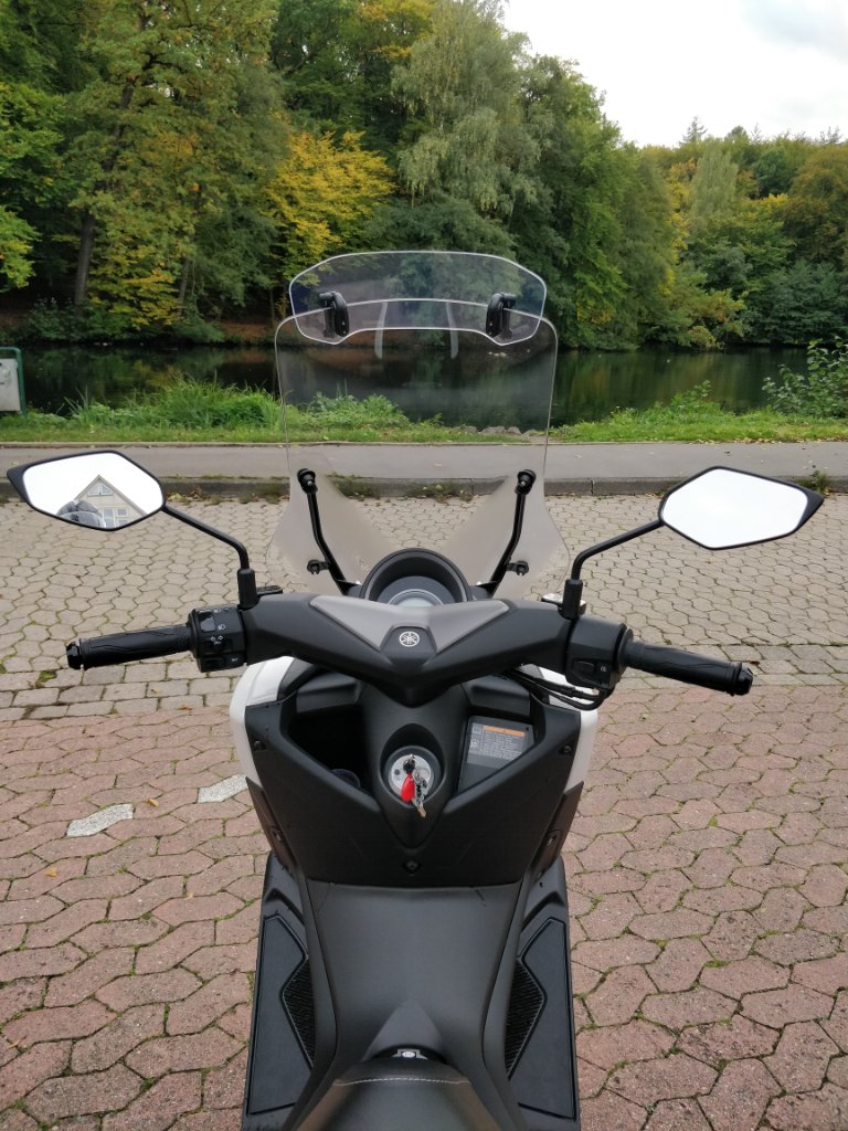 ich hatte die verstellbare MRA Aufsatzscheibe jetzt für ca. 1.000 km noch oben auf dem hohen Windshield.