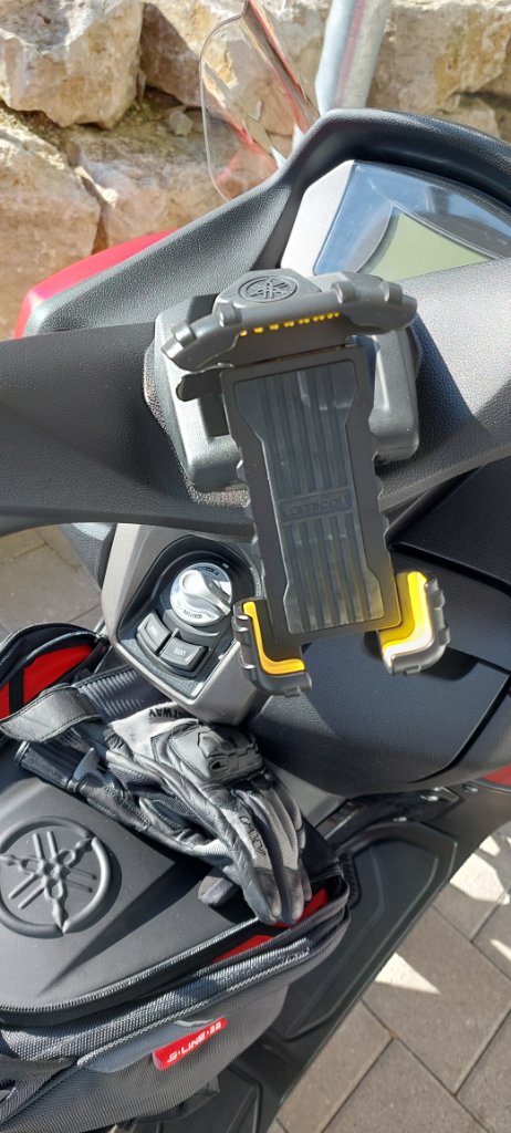 Hallo zusammen Ich habe mir die original yamaha usb lenker handy halterung gegönt da ich mit der spiegel lösung nicht zufrieden war ein sehr gutes Teil leider absolut kein Schnäppchen die halterung kosten ca 86 Euro der usb Stecker (separat warum auch immer )31 Euro das beste der einbau ca 1 Stunde da die gesamte vordere verkleidung abmontiert werden muß von der Handhabung bin ich begeistert man braucht auch nur ein sehr kurzes Kabel von der Optik gefällt es mir auch sehr gut