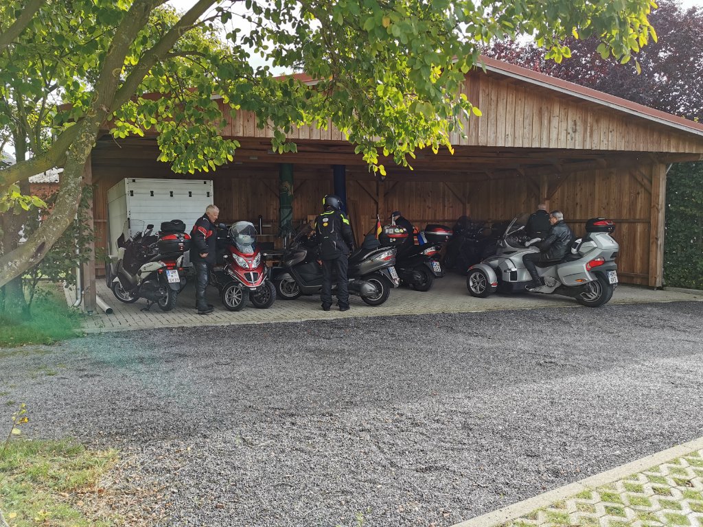 So unser 4 Tages Trip ist zu Ende, leider, Zielort war der Dümmersee. In Lembruch hatten wir 3 Übernachtungen gebucht und von da dann unsere Tagestouren geplant und gemacht. Dank des guten Wetters und der guten Truppe, (6 Rollerfahrer, 1 Can-Am und ein Motorrad) hat die Tour riesig Spaß gemacht. Da sein Roller einen Reifenschaden gehabt hat, ist er kurz entschlossen mit seinem Motorrad mitgefahren. Meine 125 N Max war die kleinste Maschine, 350 bis 400 ccm waren hauptsächlich am Start, war aber kein Problem, da wir Autobahn gemieden hatten. Unser Leitwolf hatte in seinem Navi „Kurvenreiche Strecken“ vermerkt und Landstraßengeschwindigkeiten lagen zwischen 30 und 100 km/h, für meine N Max kein Problen und mehr darf ja auch nicht gefahren werden auf Landstraßen. Laut GPS lag einmal 110 km/h an, da wir für ca. 5 km auf die AB mussten (Tacho knapp 120 km/h). Was die Dunlop Reifen betrifft, die haben auch im leichten Landregen (Dienstag auf der Hinfahrt) super funktioniert, kein Rutschen oder sonstiges. Auf einer geraden Strecke, habe ich bei 50 km/h mal den Lenker losgelassen und das Mäxchen fuhr wie auf Schienen, kein flattern oder Lenker wackeln. Was die Beschleunigung angeht, ob von der Ampel oder dem Hochbeschleunigen von 50 bis 90 km/h, ging sehr schnell, da war meine N Max keine Bremse und was Kurven betrifft, die N Max ist ein Kurvenräuber, einfach super. Insgesamt haben wir ca. 700 km mit An und Rückfahrt runter gerissen, Tagestour hin & zurück waren ca. 180 km.