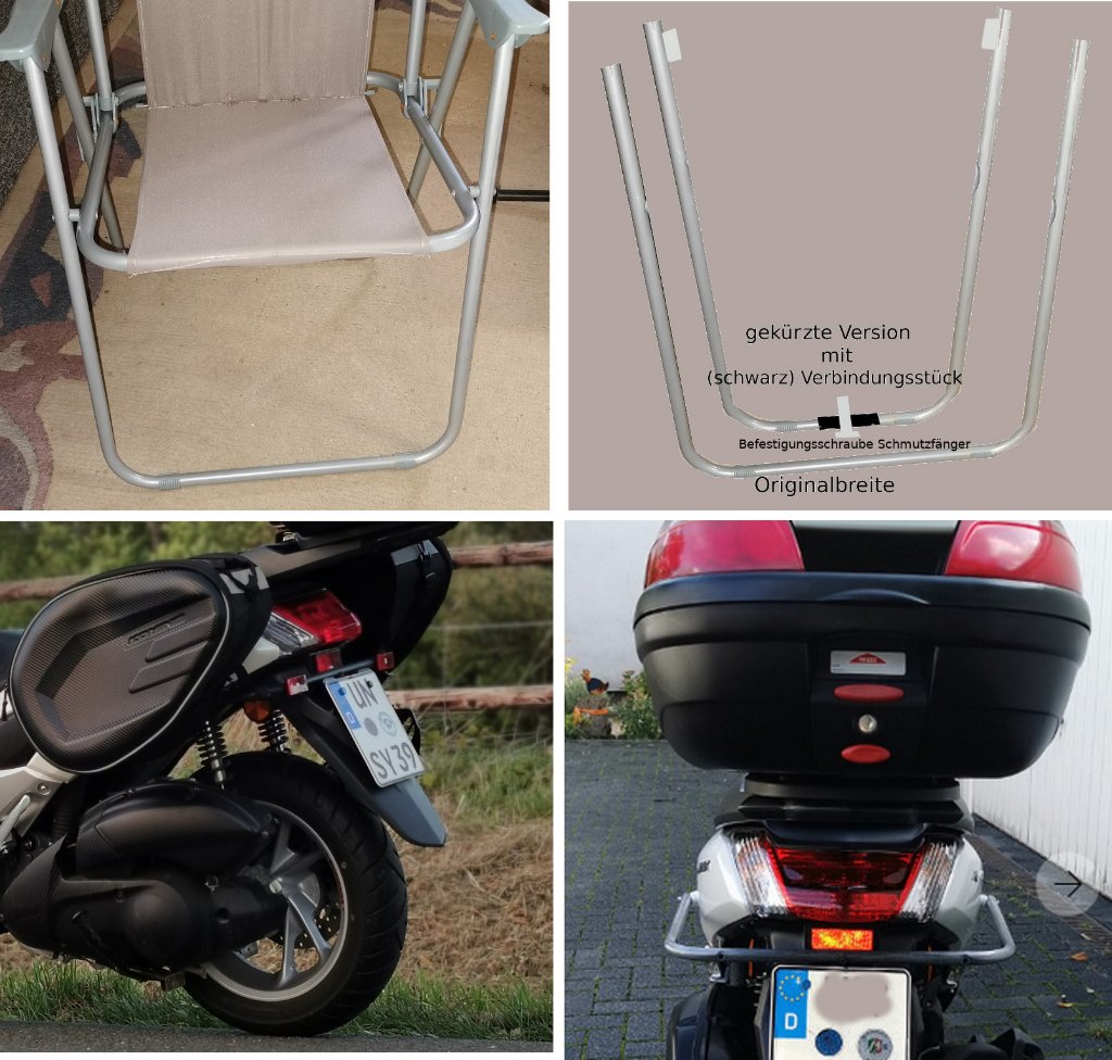 Du kannst aber auch nur selbstklebenden Fils kaufen und die Satteltaschen außen auf der Innenseiten bekleben, ich wollte aber auch mal den Roller irgendwo stehen lassen und da sollte die Satteltasche nicht so leicht zu klauen sein, meine ist am Halter verschraubt, keine Chance die schnell zu entwenden.