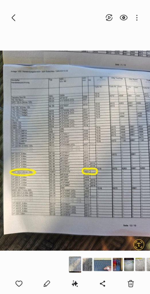 Der 155er steht in der Liste weiter unten unter: GPD 155-A (Nmax 155)Thailandurlauber hat geschrieben: Mo 1. Sep 2025, 10:54 Ich kann aber in der ABE die es auf der Webseite gibt die NMAX155 von 2024 nicht in der Liste finden. Sehr seltsam..
