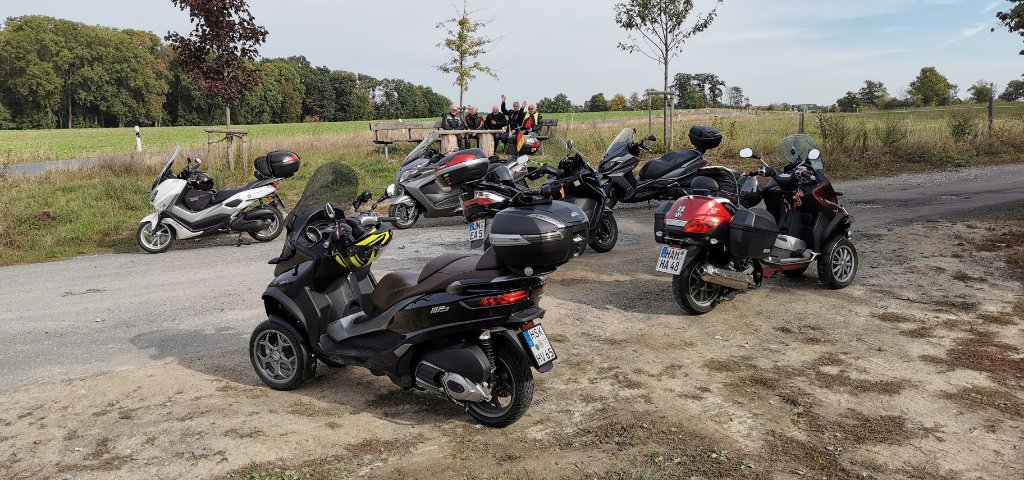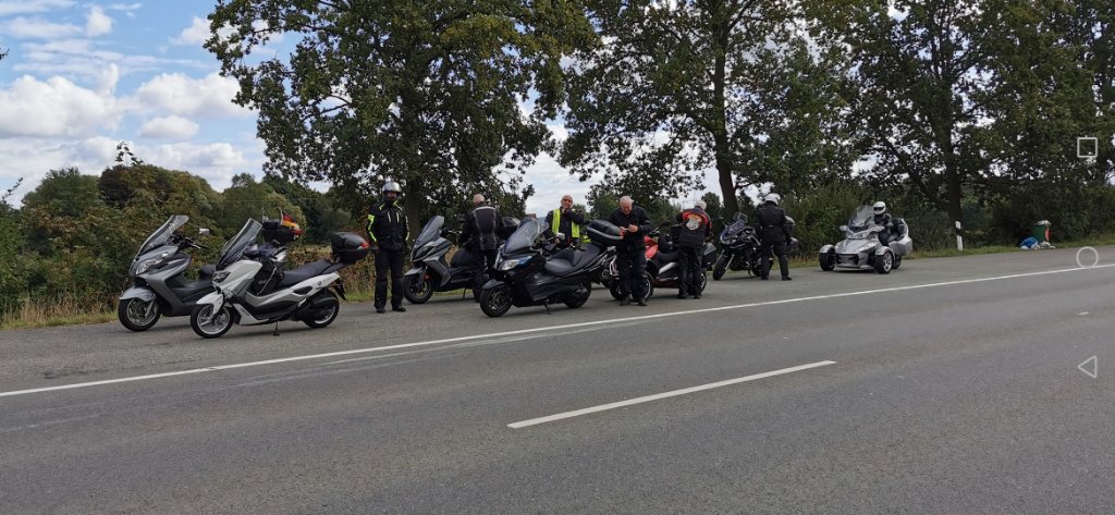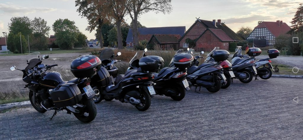 Meine N Max hat sich pudelwohl unter den größeren Rollern gefühlt (siehe Bild) und ich auch, kein Verlangen nach mehr Hubraum und PS. Die 127 kg gleichen manches aus, besonders auf kurvenreichen Strecken und im Anfahrverhalten. Bei AB Fahrten ist das dann wieder anders, mehr PS und längerer Radstand machen sich hier positiv bemerkbar, aber auf AB Fahrten hätte ich auch keinen Bock, dann käme das Mäxchen auf das WoMo und ich würde als Service Mobil mitfahren, um dann am Zielpunkt wieder auf Landstraßen Touren mitzufahren.