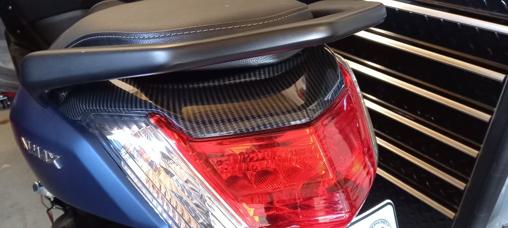 Blende über der Heckleuchte in Kohlefaseroptik.