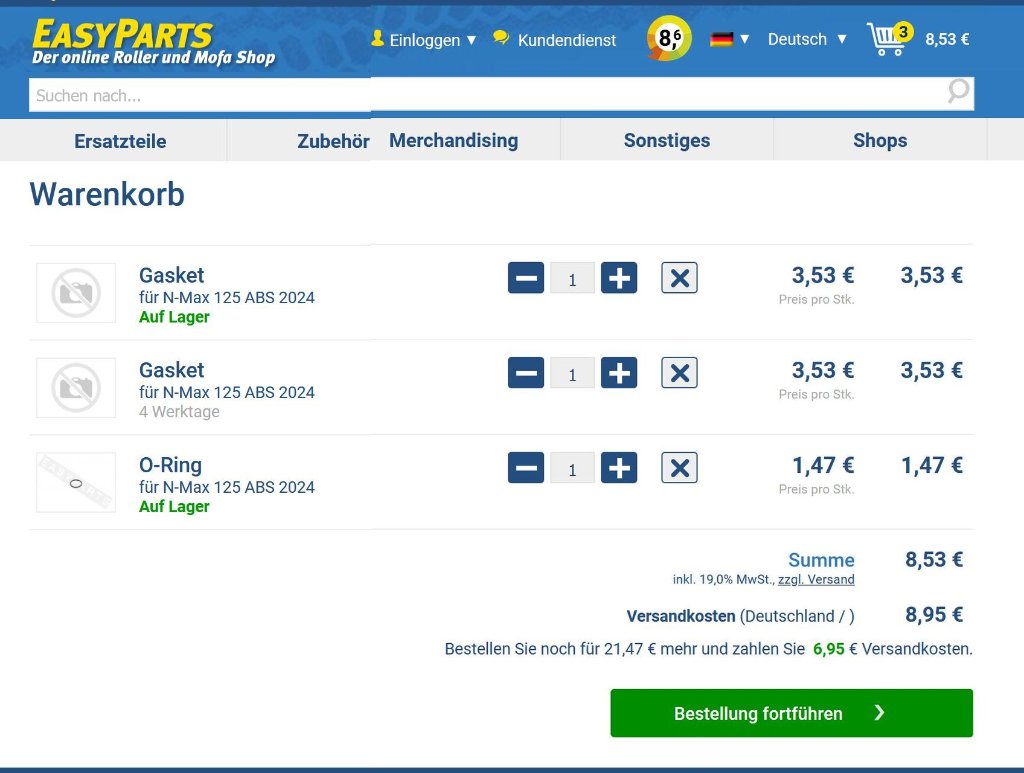 Insgesamt 17,49 Euro nun für 2 lächerliche Dichtscheiben und ein O-Ring...?