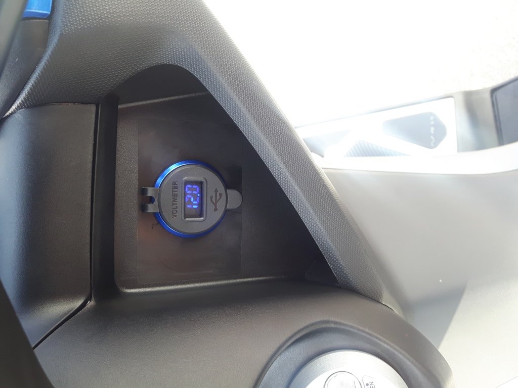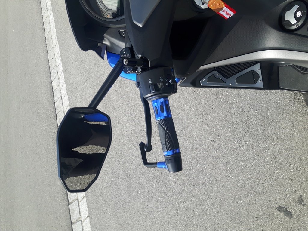 Blaue Griffe, neue Spiegel aus Alu. Die Plaste-Teile sind nicht so mein Ding. Ein Voltmeter mit USB Anschluss, zum Handyladen. Wenn man mal zum Baden Fährt.