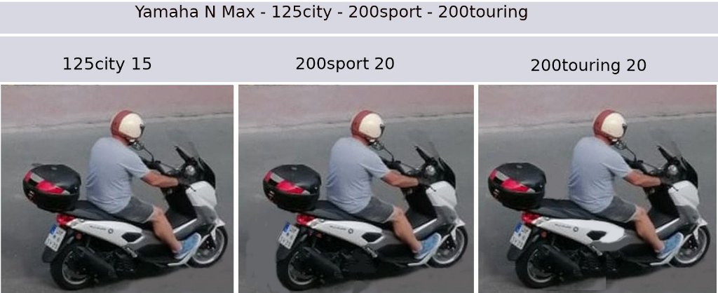 Die Zeichnung (Eigenprodukt) von der X Max zeigt die Beinhaltungsmöglichkeiten 1 und 2 sowie sie Sitzbegrenzung 3, keine optimale Sitz Lösung, besser und entspannter sitzt man auf der N Max und erst recht auf einer „N Max-L“ L für Long Version :D
