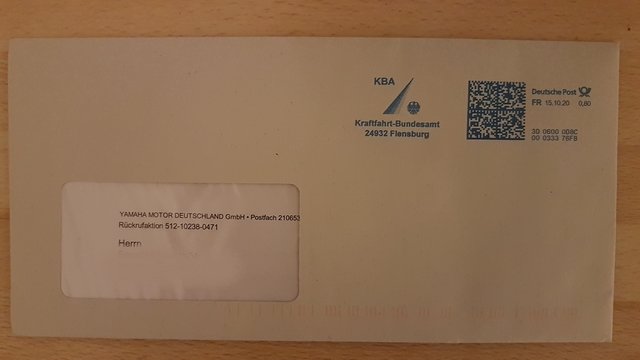 Heute Brief von Yamaha erhalten, in Werkstatt gleich Termin bekommen.
