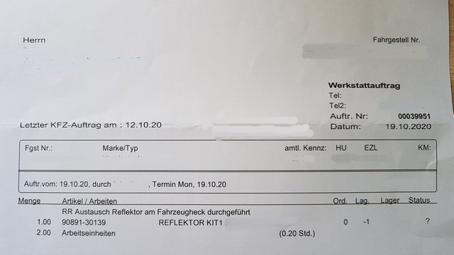 Hm... also ich habe eine Rechnung für den Werkstatt-Auftrag bekommen.