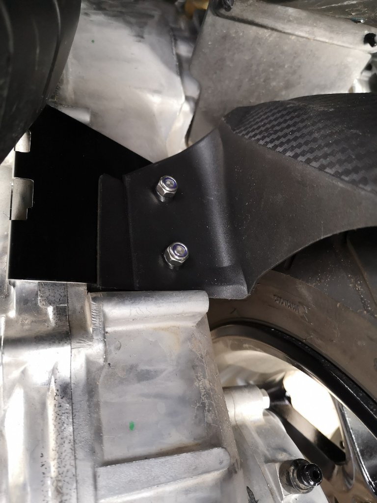 Für die Montage muss das Luftfiltergehäuse gelöst werden, damit man die linke Seite des Fenders zwischen Variomatikabdeckung(Kunststoff) und Variomatikdehäuse auflegen kann.