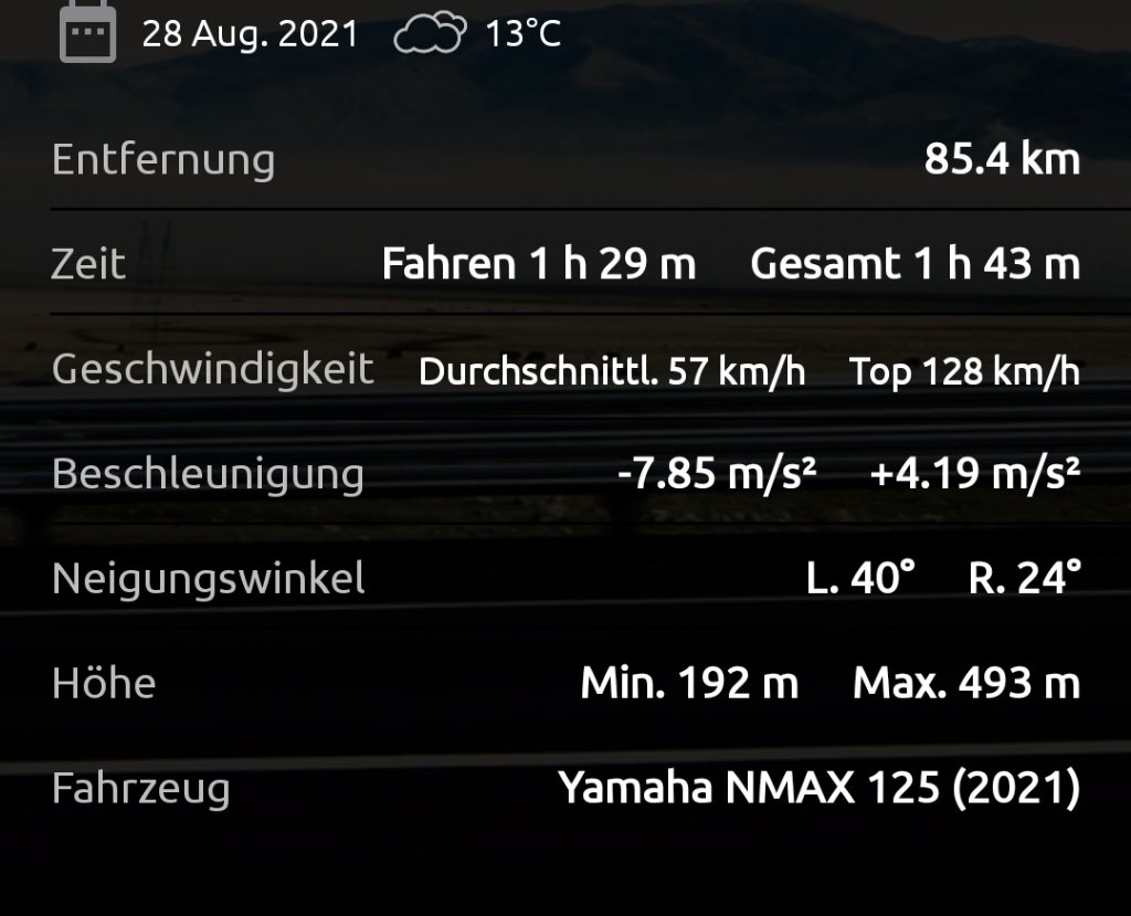 Die Beschleunigung und der Zug haben sich drastisch verbessert, mit meinem neuen Windschild passt der Topspeed und die Drehzahl ist vollkommen perfekt, immerhin ist der 125er Motor ja ein downgesizter 155er, der packt das sehr gut.