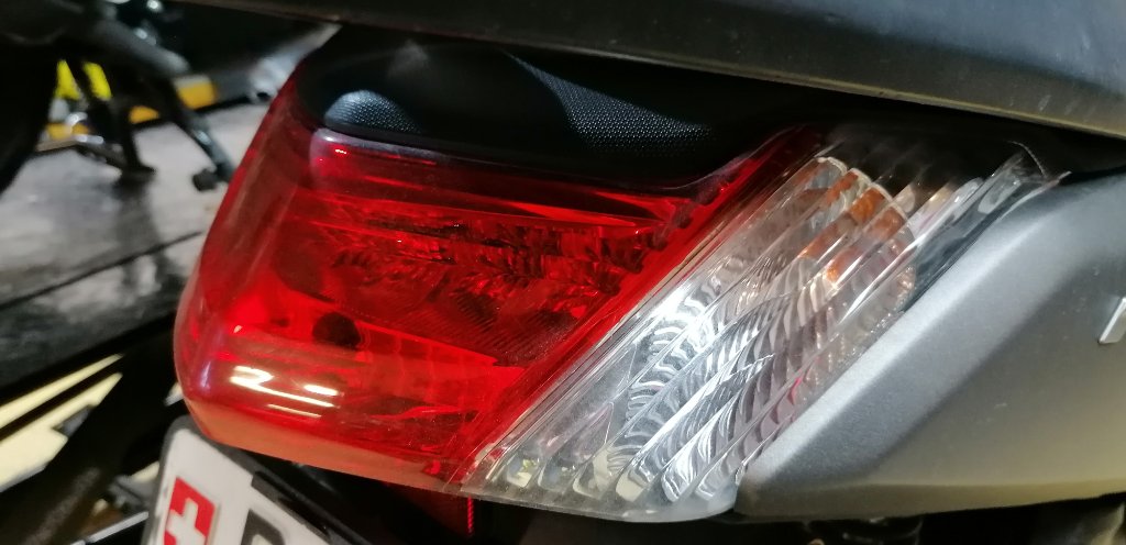 Im Vergleich dazu meine Rückleuchte. Bei dem Soziushaltegriff fehlt auch ein Stück.