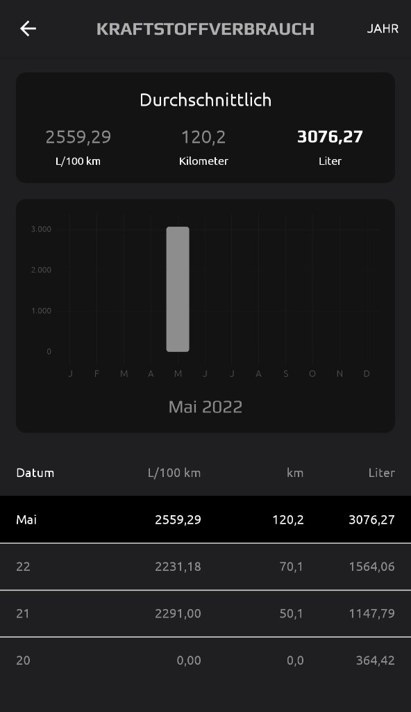 einmal geht es um den angezeigten Durchschnittsverbrauch im MyRide. Da werden utopische Werte von über 2000 L/100 Km ausgewiesen. Wie kommt das zustande? Was kann ich machen?